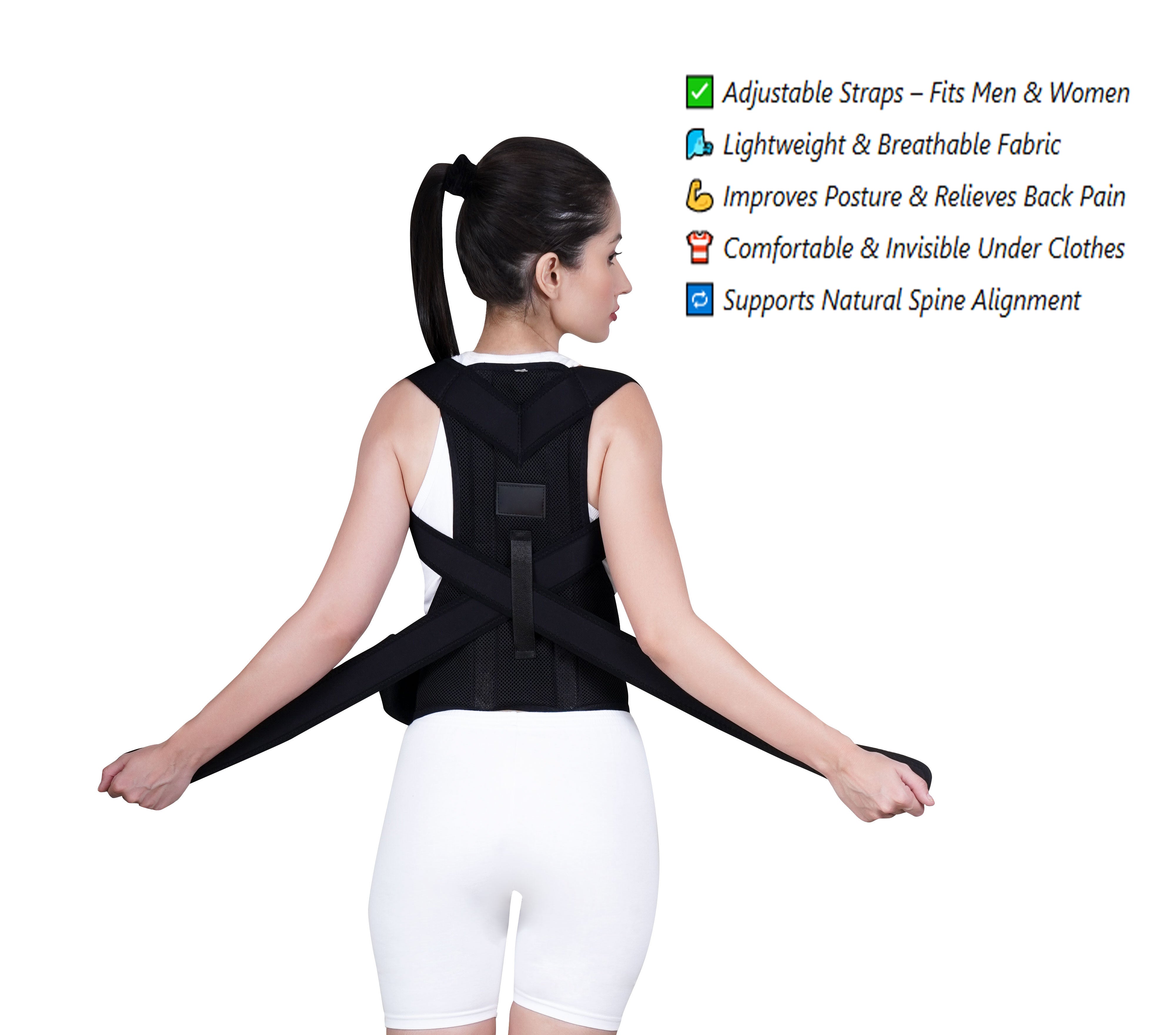 Posture & Pain Relief: Helps reduce back, neck, and shoulder pain caused by poor posture.